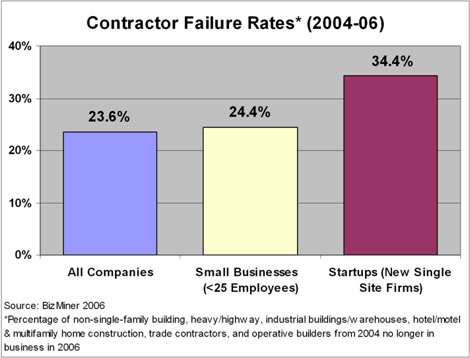 Construction is a risk-filled enterprise, and even capable and well-established contractors can ultimately fail. According to BizMiner, of 850,029 building (non-single-family), heavy/highway, industrial buildings/warehouses, hotel/motel and multifamily home construction, and specialty trade contractors operating in 2004, only 649,602 were still in business in 2006 - a 23.6% failure rate. Despite the surety's rigorous prequalification process, sometimes contractor default is unavoidable. However, when a contractor fails on a bonded project, it is the surety company that remedies the default - not the project owner or taxpayers.